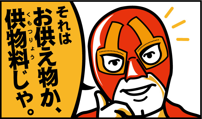 最近は供物料を包むのが一般的になっておるが、お供え物でも勿論OKじゃ。